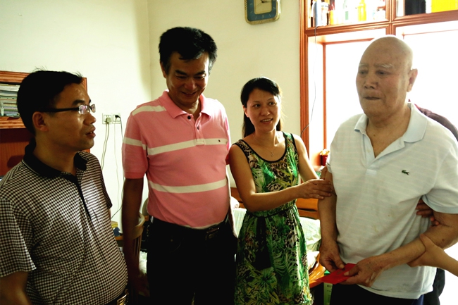 【概要描述】 “七一”建黨節(jié),公司黨委委員、紀檢書記兼工會主席王小華(左一)一行,代表公司黨委對公司離退休原領(lǐng)導(dǎo)干部進行走訪,并送上慰問金,...